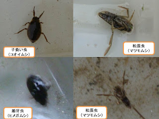 アメンボウ・芥子肩広アメンボ・粒ゲンゴロウ・子負い虫・小水虫・ウスバキトンボのヤゴ・糸トンボのヤゴ・ゲンゴロウの幼虫・ちびゲンゴロウ